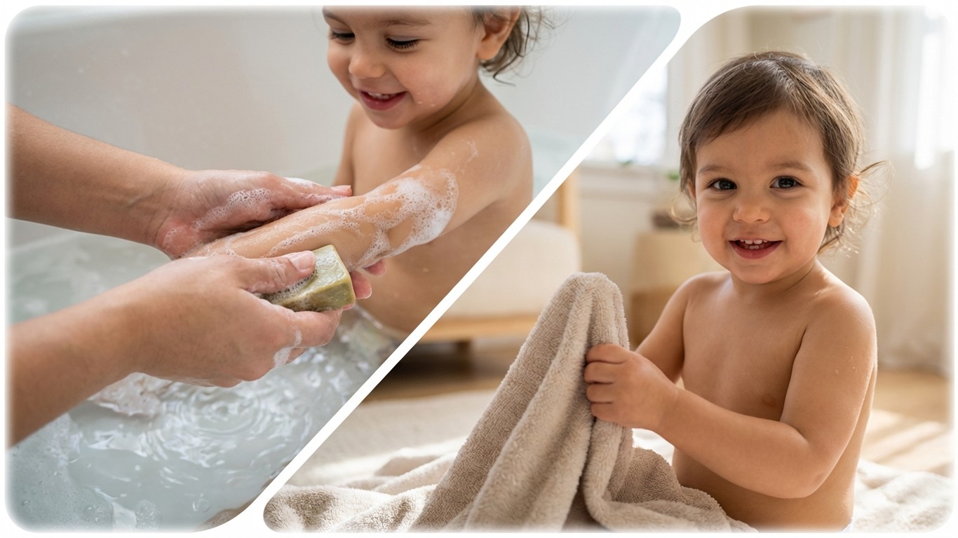 Pada usia tiga tahun, anak lebih aktif dan membutuhkan pembersihan yang efektif, namun kulitnya masih lebih sensitif daripada orang dewasa.