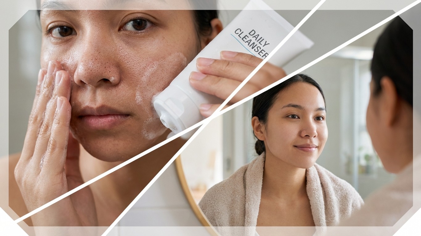 Penggunaan agen pembersih wajah yang diformulasikan secara khusus menargetkan dua masalah dermatologis yang saling terkait: penyumbatan pori dan penampilannya yang membesar.