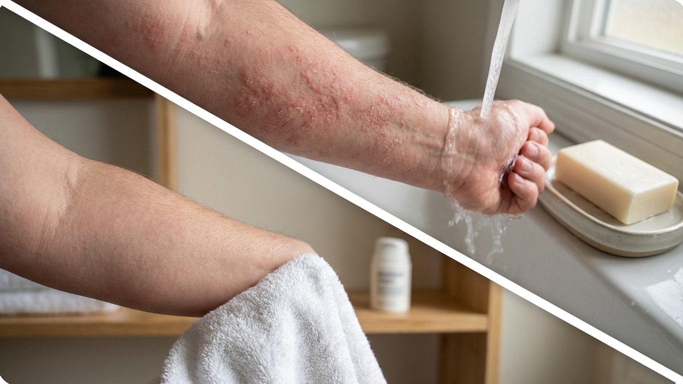 Mirip dengan eksim, penderita psoriasis memerlukan pembersih yang tidak menghilangkan kelembapan alami kulit. Produk ini dapat membantu mengurangi penumpukan sisik dan menjaga kulit tetap lembap tanpa menyebabkan iritasi lebih lanjut.