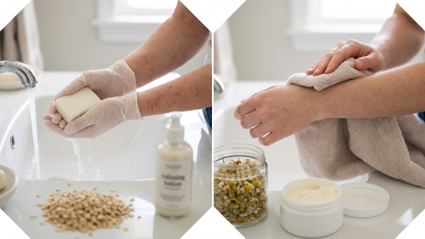 National Eczema Association sering kali merekomendasikan produk pembersih spesifik yang bebas dari iritan sebagai lini pertama dalam perawatan harian.